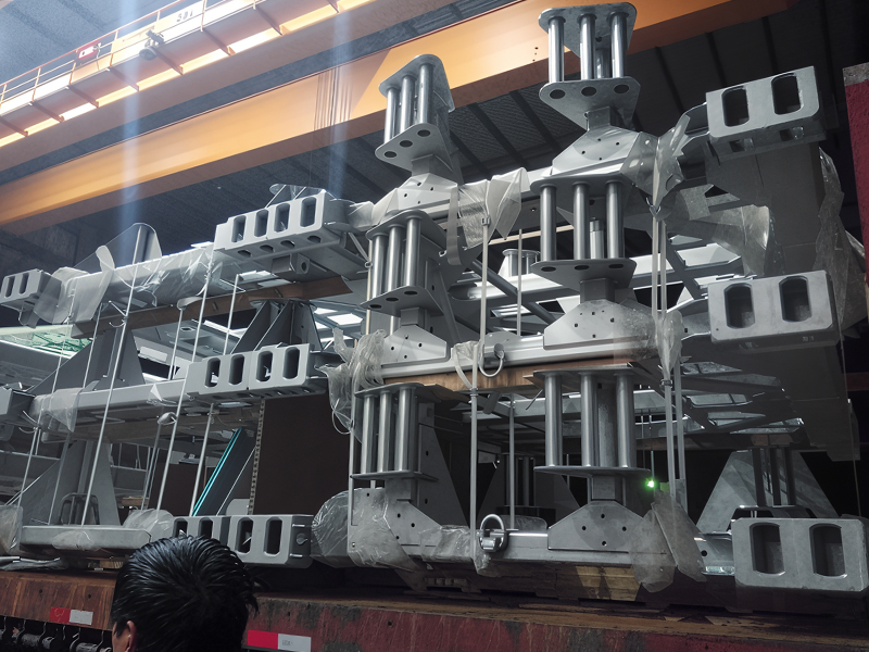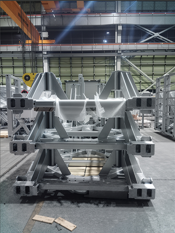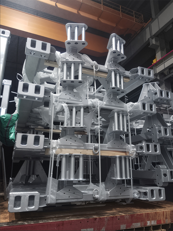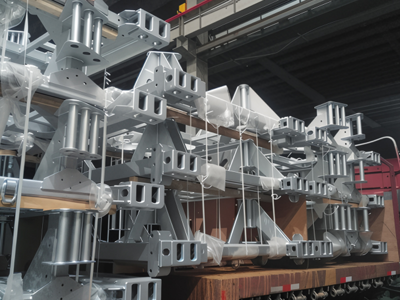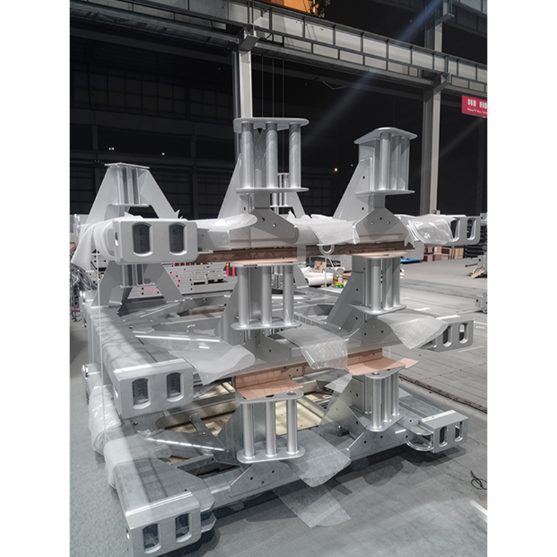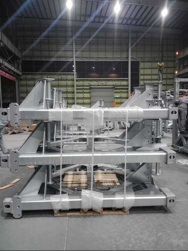 L'équipement de transport spécial pour l'industrie éolienne est l'équipement de base qui assure le transfert sûr de grandes éoliennes. Il dispose d'une conception de structure composite en aluminium en acier, où des matériaux comme l'acier à haute résistance Q355B fournissent un support rigide pour le cadre principal, tandis que les composants en alliage en aluminium atteignent une construction légère, une capacité de charge d'équilibrage et une flexibilité de transport. Le corps principal est soudé des plaques et des profils dans un cadre modulaire, formant une boîte de boîte ou de palette, avec des processus d'assemblage de précision garantissant la stabilité globale. La surface du produit subit une galvanisation à trempette à chaud, formant une couche dense en alliage zinc-fer qui résiste au spray salin et à la corrosion, ce qui le rend adapté à des environnements extérieurs difficiles. Ce type d'équipement est fabriqué sur mesure pour les composants surdimensionnés tels que les lames d'éoliennes, les sections de tour, les nacelles et les moyeux, équipées de systèmes de fixation multi-points et de dispositifs absorbant les chocs, capables d'avoir des impacts avec des conditions routières complexes. Il répond aux exigences de charge strictes de la logistique de l'énergie éolienne, améliorant efficacement le cycle de vie de l'équipement et réduisant les coûts opérationnels et de maintenance sur toute sa durée de vie.