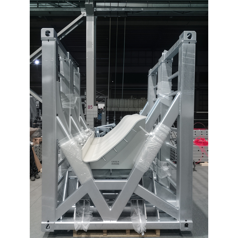Le cadre de transport de la lame d'éoliennes est fabriqué en acier à haute résistance (comme l'acier de la série S355), et est principalement façonné par des processus de coupe et de soudage numériques pour assurer la résistance structurelle et la précision dimensionnelle. Pour répondre à la longueur des lames et à leur distribution de poids asymétrique, le cadre dispose d'une conception de section, avec des joints de soudure inspectés par le biais de tests ultrasoniques (UT) pour soutenir de manière fiable le poids des lames. La surface est protégée contre la corrosion à l'aide d'un processus de galvanisation à hot-plongeur, ce qui améliore considérablement la résistance à la corrosion par pulvérisation saline par rapport à la peinture traditionnelle, ce qui le rend adapté aux environnements à forte humidité et à spray salin rencontrés pendant le transport maritime. Les zones de contact clés sont équipées de coussinets de coussin en polyuréthane, combinant la double protection de la couche galvanisée et du matériau élastique pour réduire efficacement le risque de micro-cracks à la surface de la lame, répondant ainsi aux normes de transport pertinentes.